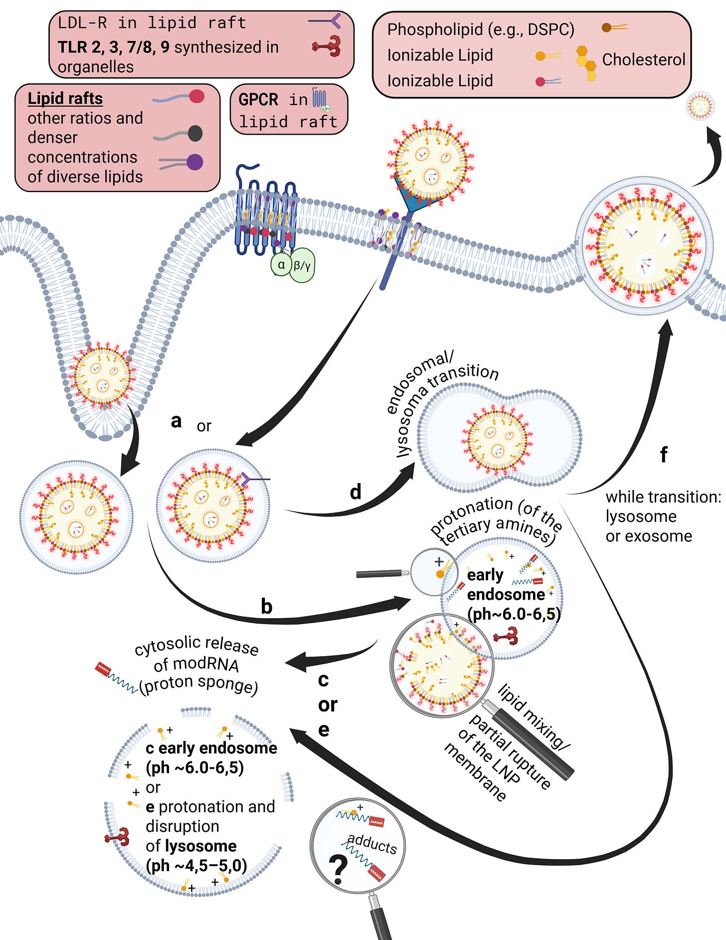 We examine the biocorona, clarify why the phrase “goes everywhere in the body” oversimplifies the true behavior of LNPs, and highlight critical research gaps that warrant a moratorium. We raise concerns about the uncertainty surrounding which receptors are internalized, activated, or influenced by interactions with lipid rafts.