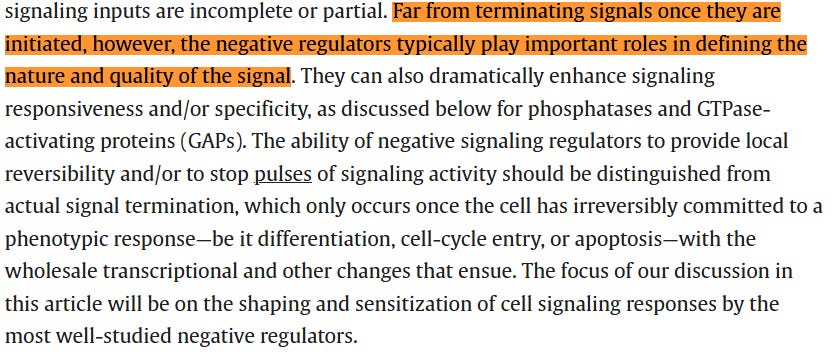 “Far from terminating signals once they are initiated, however, the negative regulators typically play important roles in defining the nature and quality of the signal.”