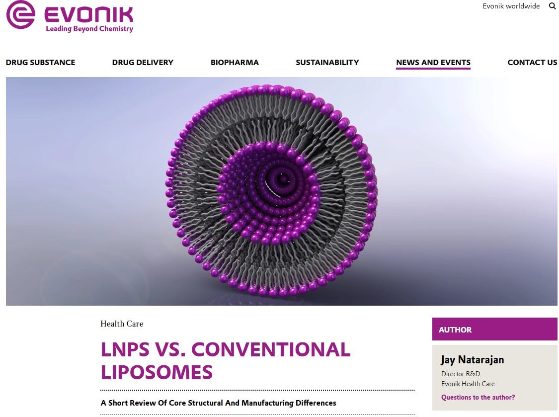 Next, let us clarify the difference between LNPs and liposomes. I quote Jay Natarajan from Evonik, an official manufacturer of LNPs: