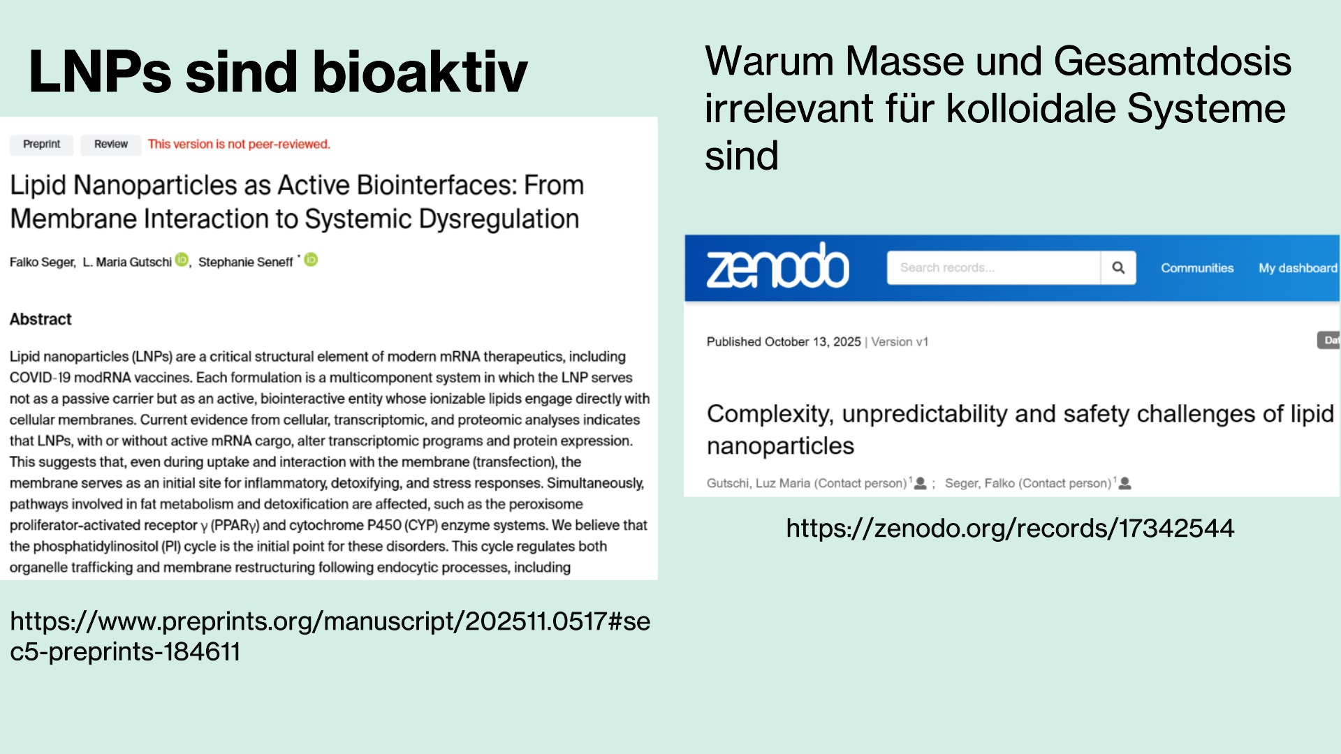 If you wish to understand the details more deeply, I recommend reading both the work by myself, Maria Gutschi, and Dr. Seneff, as well as the paper by Maria and myself that was shown at the beginning of this lecture, where we extensively review all mechanisms and properties discussed here using the current LNP literature.